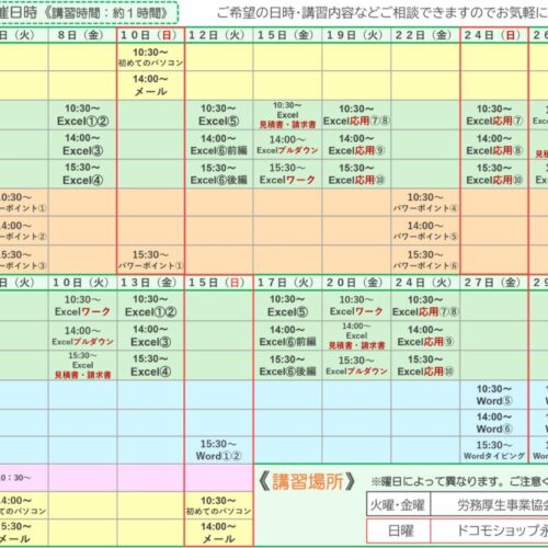 9月・10月のパソコン教室